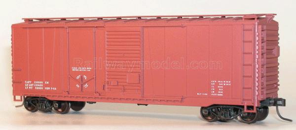 40' стальной товарный вагон с комбинированной дверью. Комплект для сборки (KIT). Без принадлежности к какой-либо дороге, на вагон нанесены только технические данные (год постройки, вес и т.п.)