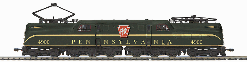 Электровоз GG1. Установлен универсальный цифровой декодер со звуком Proto-Sound 3, работающий как с аналогом, так и с цифрой. Дистанционно управляемые сцепки PROTO (также в комплекте прилагаются стандартные магнитные сцепки типа Kadee). Моторизованные, управляемые с пульта, пантографы. В кабине - фигурки машиниста и помощника, свет в прожекторах и номерных таблицах, освещение в кабине. Принадлежность Pennsylvania Railroad #4900