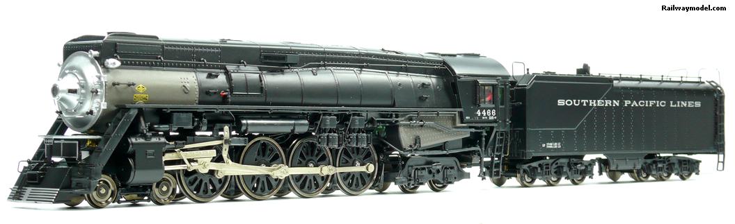 Паровоз 4-8-4 GS-6 # 4466 принадлежность Southern Pacific, цвет - черный, надпись на тендере выполнена маленькими белыми буквами. Установлен дымогенератор, а также цифровой декодер со звуком Proto-Sound 3 с оригинальной системой синхронизации дыма и звука Puffing ProtoSmoke System. Модель выполнена из металла, также из металла выполнены поручни, колокол и свисток. В комплекте прилагается жидкость для дымогенератора. Минимально рекомендуемый радиус 22" (558 мм). Может использоваться как на рельсах высотой 2.1 так и 2.5 мм. Рекомендуем прочитать краткий исторический обзор о паровозах Golden State
