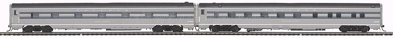 Набор № 1 из двух пассажирских вагонов 20th Century Limited - спальные вагоны тип 10-5 и тип 13, вариант окраски 1938-го года. Принадлежность New York Central. Устновлено освещение, металлические поручни, великолепная детализация не только внутри, но и под вагоном. Рекомендуется минимальный радиус 22 дюйма (558,8 мм).