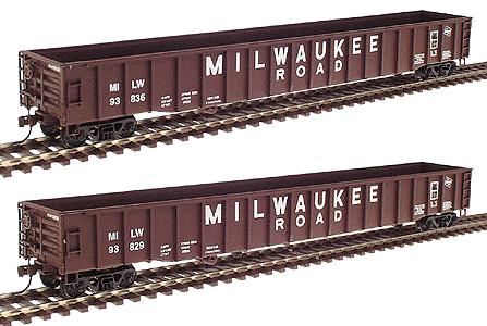 65' полувагон для обслуживания различных металлургических и машиностроительных заводов, для перевозки длинномерных, крупнотоннажных грузов и материалов, набор из 2 шт. Принадлежность Milwaukee Road