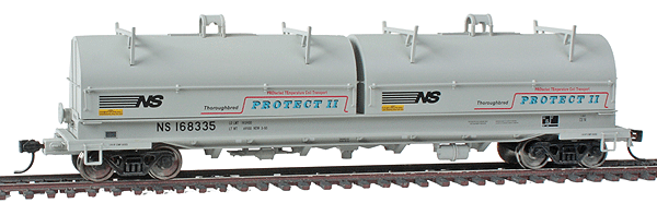 Серия Platinum Line. Специальная 50' платформа Evans для перевозки рулонов стали с защитой от осадков. Принадлежность Norfolk Southern #168335