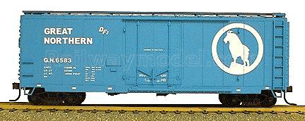 40' товарный вагон AAR. Комплект для сборки (KIT). Принадлежность Great Northern. Вариант с высокой лестницей и переходной площадкой на крыше вагона.