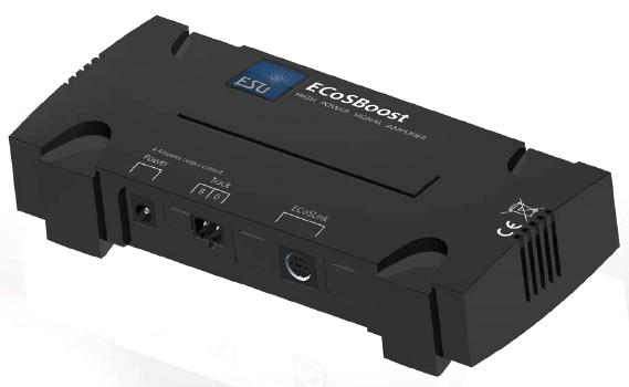 ECoSBoost, усилитель (бустер) для больших масштабов (напр, "садовая" железная дорога), 8A, DCC/Motorola/Selectrix/mfx. В комплекте универсальный блок питания 110-240В. Используется, если потребление электроэнергии всеми локомотивами и другими энергопотребителями на макете больше, чем может выдать центральная станция.