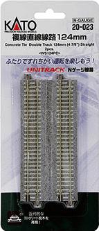 Рельсы KATO Unitrack. Двухпутная прямая с бетонными шпалами. Длинна 124мм, в упаковке - 2шт.