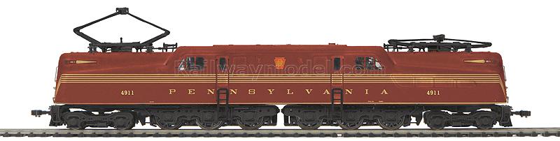 Электровоз GG1. Установлен универсальный цифровой декодер со звуком Proto-Sound 3, работающий как с аналогом, так и с цифрой. Дистанционно управляемые сцепки PROTO (также в комплекте прилагаются стандартные магнитные сцепки типа Kadee). Моторизованные, управляемые с пульта, пантографы. В кабине - фигурки машиниста и помощника, свет в прожекторах и номерных таблицах, освещение в кабине. Принадлежность Pennsylvania Railroad #4911