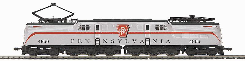 Электровоз GG1. Модель для трёхрельсовой системы Marklin (не подходит для стандартной DC/DCC). Установлен цифровой декодер со звуком Proto-Sound 3E+, а также управляемые с пульта пантографы. Принадлежность Pennsylvania Railroad #4866