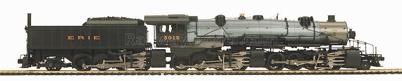 Паровоз Erie 2-8-8-8-2 Triplex. Установлен дымогенератор, а также универсальный цифровой декодер со звуком Proto-Sound 3 с оригинальной системой синхронизации дыма и звука Puffing ProtoSmoke System, работающий как с аналогом, так и с цифрой. Фигурки машиниста и кочегара. Свет в прожекторе и фонарях, а также в кабине. Модель выполнена из металла. В комплекте прилагается жидкость для дымогенератора. Принадлежность Erie #5015. Об истории паровоза Вы можете прочитать в статье Локомотив Triplex: Краткая историческая справка