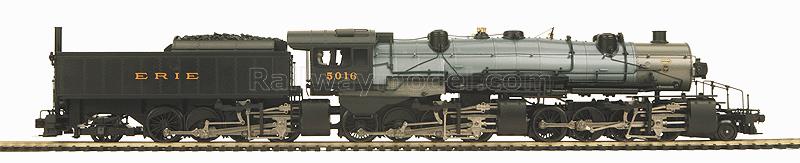 Паровоз Erie 2-8-8-8-2 Triplex. Установлен дымогенератор, а также универсальный цифровой декодер со звуком Proto-Sound 3 с оригинальной системой синхронизации дыма и звука Puffing ProtoSmoke System, работающий как с аналогом, так и с цифрой. Фигурки машиниста и кочегара. Свет в прожекторе и фонарях, а также в кабине. Модель выполнена из металла. В комплекте прилагается жидкость для дымогенератора. Принадлежность Erie #5016 (окраска Russian Iron). Об истории паровоза Вы можете прочитать в статье Локомотив Triplex: Краткая историческая справка