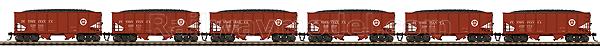 Набор из 6 стальных 55-тонных хоппер-вагонов USRA. Принадлежность Pennsylvania #220166, 220138, 220105, 220109, 220184, 220173