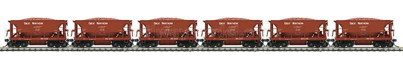 Набор из шести 70-тонных вагонов для перевозки руды (т.н. вагоны “Ore Jennies”) с грузом. Принадлежность Great Northern