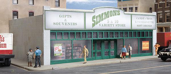 Магазин Simmons Five & Dime на центральной улице. Размер 18 x 13.9 x 7.6 см. Типичная эра - с 40-х годов прошлого века по наше время